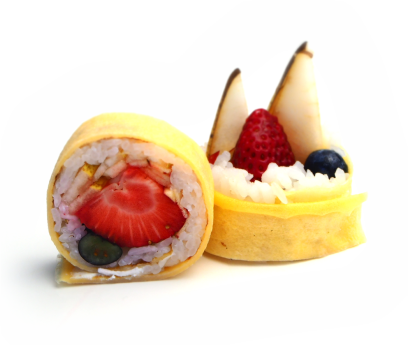 omlet, owoce sezonowe, serek śmietankowy, nutella, bita śmietana (serwowana tylko na miejscu)| rolka krojona na 6 kawałków+ opakowanie 4zł ( ta rolka wymaga osobnego opokawania)